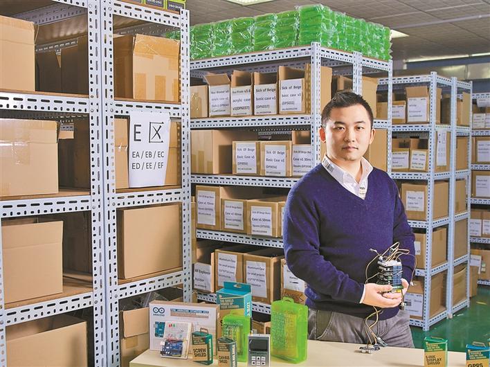 我在大學(xué)甚至更早的時(shí)候就深有體會(huì)——我有很多想法,但是缺乏必要的技術(shù)去把這個(gè)想法實(shí)現(xiàn)出來。我在國(guó)外的一個(gè)開源硬件論壇留言說我的體會(huì),沒想到有那么多創(chuàng)客回饋說有同感,論壇上創(chuàng)客們的積極回應(yīng)讓我看到了商機(jī)。我發(fā)現(xiàn),很多硬件模塊因?yàn)閯?chuàng)客需要的量少,很多工廠不愿意生產(chǎn)。后來,我想到了在國(guó)際創(chuàng)客論壇發(fā)帖征集創(chuàng)客們的需求,再到國(guó)內(nèi)電子市場(chǎng)搜集硬件加工后發(fā)給創(chuàng)客的點(diǎn)子。于是,我便做起了開源硬件的生意?!盀閯?chuàng)客服務(wù)”,這是我創(chuàng)業(yè)的最初目標(biāo)。