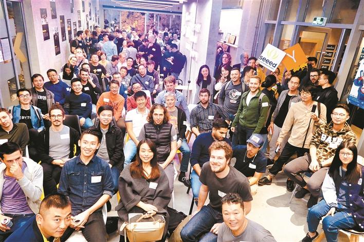 ▲2018年12月,硅谷著名創(chuàng)業(yè)孵化器Y Combinator成員到訪柴火創(chuàng)客空間,潘昊(前排左一)在柴火創(chuàng)客空間發(fā)起社區(qū)分享活動(dòng)。