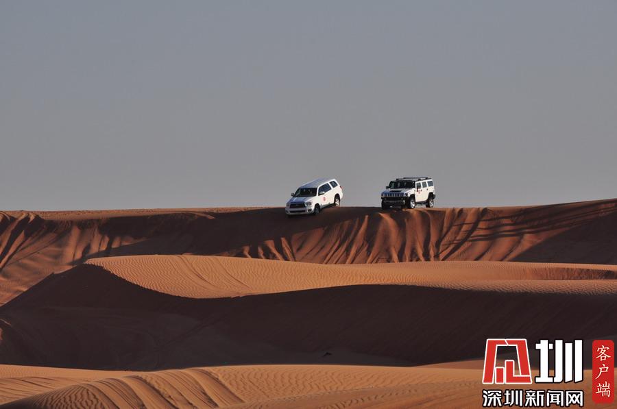 隨著越野車內(nèi)的驚聲尖叫,駕駛員已加大油門沖上前方的沙丘,高度不斷增加,坡度也越來越大,有時(shí)會達(dá)到六七十度,就在感覺車幾乎要翻的時(shí)候,突然整個(gè)身體失重,隨著陣陣尖叫,每個(gè)人都緊緊抓死把手,當(dāng)你落到座位上坐穩(wěn)時(shí),才反應(yīng)過來越野車已從很高的沙丘上俯沖了下來!李仁奇攝