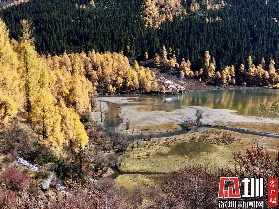 溝里有大片的落葉松、杜鵑和云杉林,雪山、海子、濕地、河流等景觀應(yīng)有盡有,唯獨(dú)沒有公路,只能沿木棧道徒步游覽。李仁奇攝