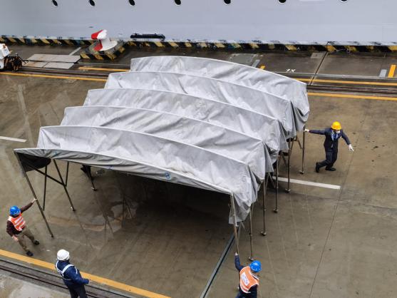 疫情就是命令,防控就是責(zé)任。目前正值春運(yùn)保障高峰,蛇口郵輪母港作為重要交通樞紐,接到歌詩達(dá)“威尼斯”號郵輪重大疫情防控指令后,在政府機(jī)構(gòu)的統(tǒng)一領(lǐng)導(dǎo)、招商蛇口的組織部署及關(guān)檢單位的協(xié)同配合下,全體員工勇?lián)?dāng)、敢作為,把維護(hù)旅客平安出行和員工身體健康作為“第一要?jiǎng)?wù)”,全面落實(shí)聯(lián)防聯(lián)控措施,構(gòu)筑起群防群治的嚴(yán)密防線。