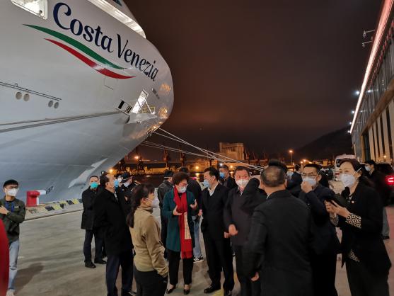 為確保1.26清晨電視電話會(huì)議順利召開,郵輪母港工程師連夜趕回公司調(diào)試設(shè)備;港口值班經(jīng)理尹犇接到海關(guān)急需手持式體溫測量儀的消息后,凌晨2點(diǎn)騎自行車前往公司將三臺(tái)手持式體溫測量儀交接到海關(guān)人員手中,為海關(guān)排查歌詩達(dá)威尼斯號郵輪旅客體溫做好保障工作,深夜疫情下的街道顯得格外冷情。