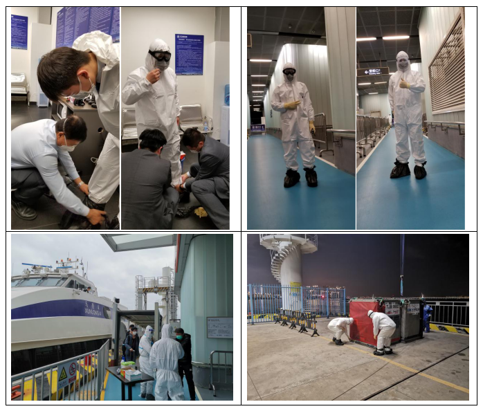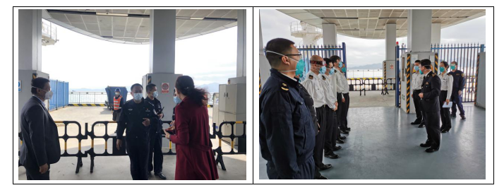 港口各級(jí)干部員工勇于擔(dān)當(dāng)、迎難而上,勠力同心、眾志成城,共同筑牢嚴(yán)防疫情輸入的堅(jiān)強(qiáng)防線,用實(shí)際行動(dòng)詮釋了“牢記使命勇?lián)?dāng)”。蛇口郵輪母港呂如福常務(wù)副總經(jīng)理與港口運(yùn)營(yíng)中心林麗華總經(jīng)理連夜開(kāi)會(huì)部署至深夜,第二天仍早早趕到現(xiàn)場(chǎng)與聯(lián)檢單位共同查勘旅客動(dòng)線;賴乙??偙O(jiān)接到航班通知后,放棄值班休息第一時(shí)間趕到現(xiàn)場(chǎng)布置各項(xiàng)保障任務(wù),并親自為一線員工穿戴防護(hù)用品;港口一線員工面對(duì)夜間加開(kāi)航班旅客人數(shù)多且有發(fā)燒旅客的情況,毫不退縮、沖鋒在前,順利完成保障任務(wù),一直到深夜客船和旅客動(dòng)線消毒清場(chǎng)完畢才下班。