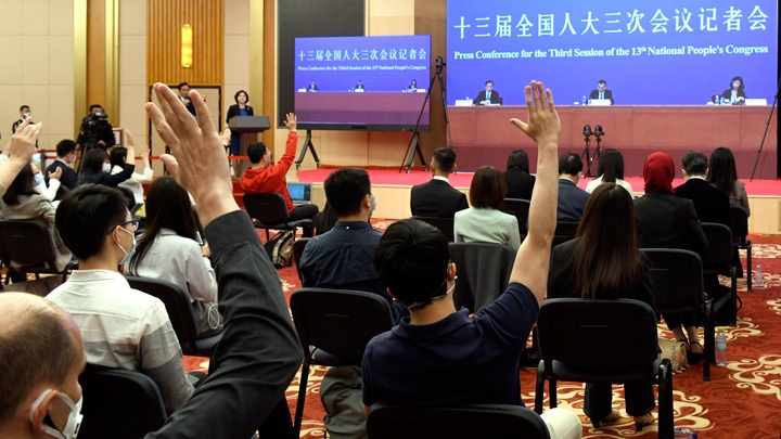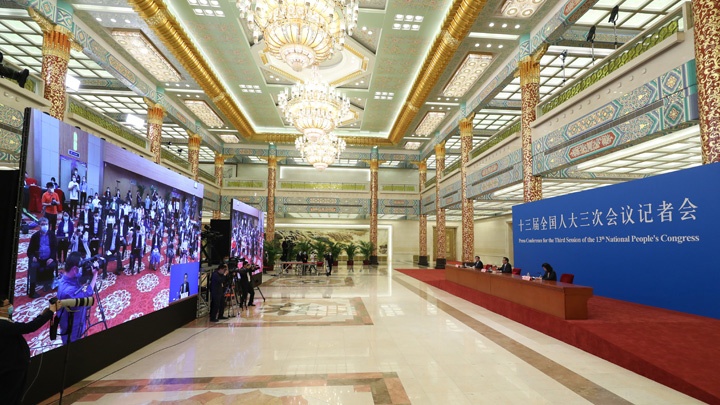 2020年5月28日(星期四)下午十三屆全國人大三次會(huì)議閉幕后,國務(wù)院總理李克強(qiáng)在人民大會(huì)堂三樓金色大廳出席記者會(huì)并回答中外記者提問。為有效防控疫情,共同維護(hù)公共衛(wèi)生與健康,記者會(huì)采用網(wǎng)絡(luò)視頻形式進(jìn)行。新華網(wǎng)、中國政府網(wǎng)進(jìn)行現(xiàn)場直播。 [2020-05-2814:00 ]