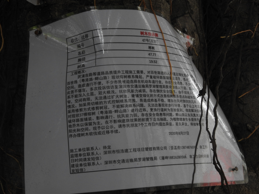 9月11日,市交通運輸局羅湖管理局回應(yīng)表示,稱“經(jīng)核實,百世路西段北側(cè)(畔山路以西)樹木為大葉榕,屬于榕樹的一種,榕樹有多種,如小葉榕、大葉榕、高山榕、垂葉榕等,百世路榕樹現(xiàn)狀根系已確實對人行道造成破壞。”對于其它樹被砍的情況,“僅對影響道路轉(zhuǎn)彎半徑(畔山路右轉(zhuǎn)百世路)的兩棵鳳凰樹遷移砍伐”。并在不影響遮陰的情況下“對北側(cè)過密其他喬木進行抽梳”。