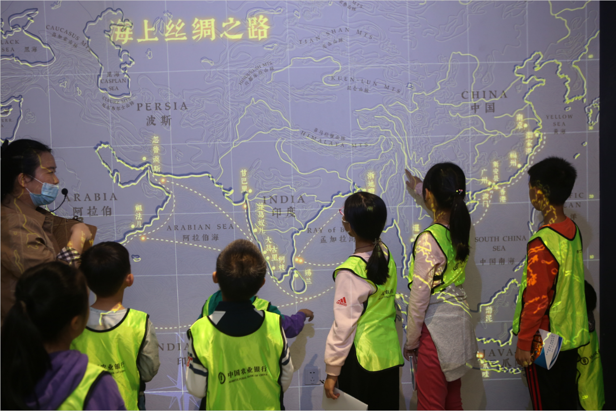 新安縣衙、東莞會館、報德祠、織金廣彩館、牌匾故事館、南頭古城博物館獻(xiàn)禮特區(qū)40周年展……小朋友們跟隨老師的步伐,認(rèn)真聆聽著古城歷史。南頭1820數(shù)字展廳的絹本國畫長卷《南頭繁會盛景圖》吸引著孩子們的注意,這幅別具特色的畫卷采用三維鏡頭呈現(xiàn)出一幅具有中國畫意境、專屬南頭的古代勝景。孩子們通過沉浸式體驗(yàn),穿越回清朝的南頭古城,感受著古時候南頭人民的生活?!霸瓉砟项^古城這么厲害,以前各國到廣州貿(mào)易的商船都要先??吭谶@里,‘粵東首府、港澳源頭’指的都是南頭古城?!笔畾q的赫赫興奮的告訴記者。作為深圳、香港城市發(fā)展的共同源頭,南頭古城的發(fā)展史在很大程度上就是一部深圳城市的發(fā)展史。