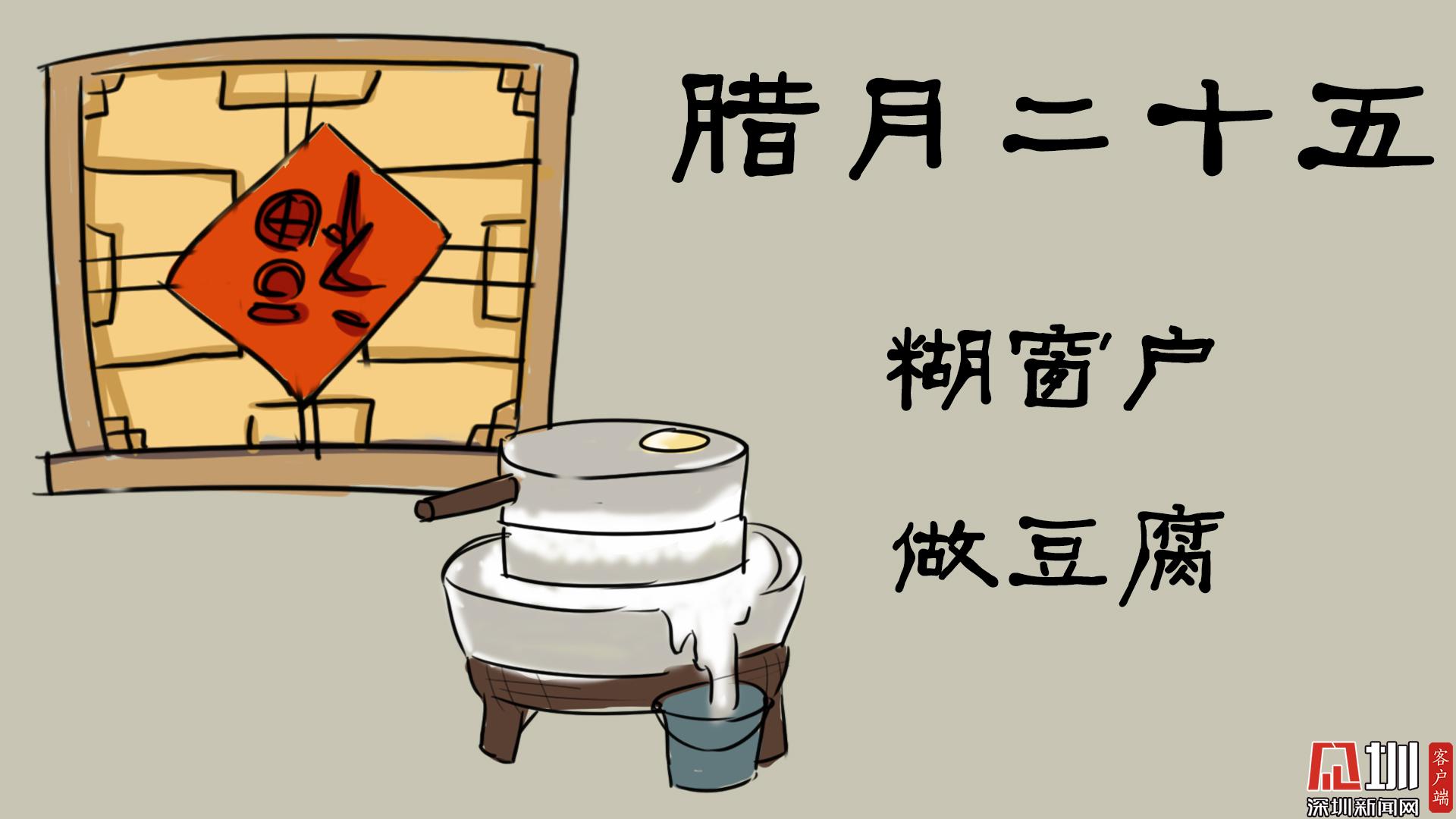 到了這天,人們將浸泡過的黃豆,用石磨磨碎,制作好春節(jié)要食用的豆腐。因為腐與富諧音,寓意著來年富富余余。臘月二十五還有“糊窗戶”的說法,即二十四掃完塵、二十五就該糊窗戶了。但隨著社會發(fā)展,糊窗戶的傳統(tǒng)已漸漸失去,但貼窗花、貼福字、掛對聯(lián)仍然是必不可少的。