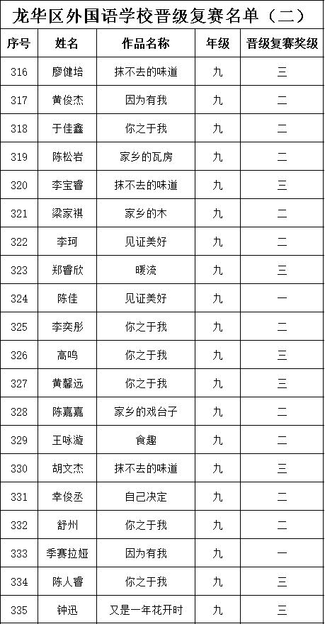 自2021年1月,活動征稿啟動以來,獲得了深圳市廣大中小學生、教師、文學愛好者的熱烈響應(yīng)積極參與,吸引了深圳百余所學校的上萬人關(guān)注報名。現(xiàn)公布龍華區(qū)外國語學校專場晉級復賽名單如下: