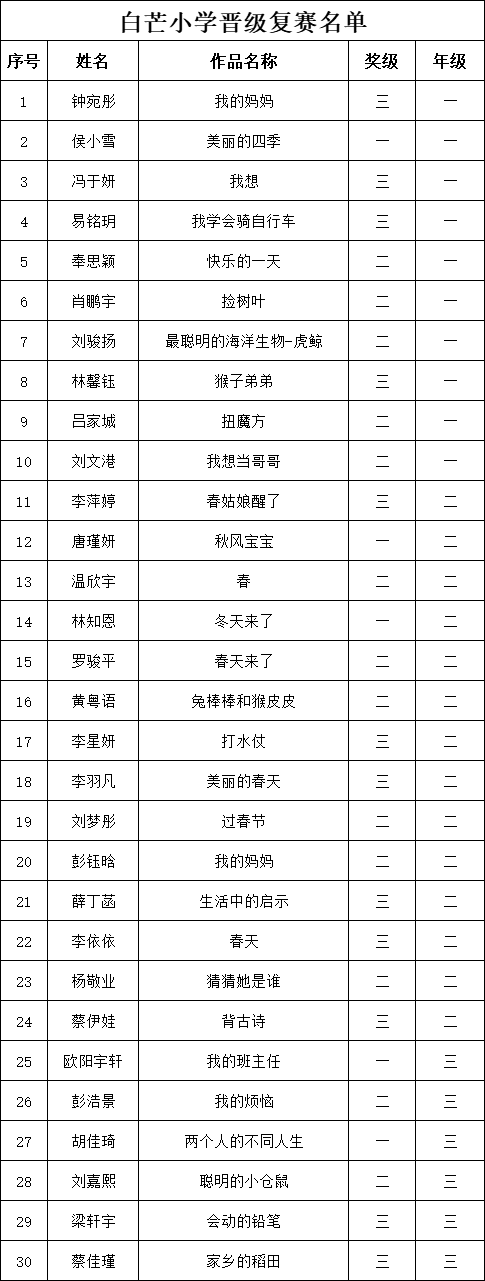 自2021年1月,活動征稿啟動以來,獲得了深圳市廣大中小學生、教師、文學愛好者的熱烈響應積極參與,吸引了深圳百余所學校的上萬人關注報名?,F(xiàn)公布深圳市南山實驗教育集團白芒小學專場晉級復賽名單如下: