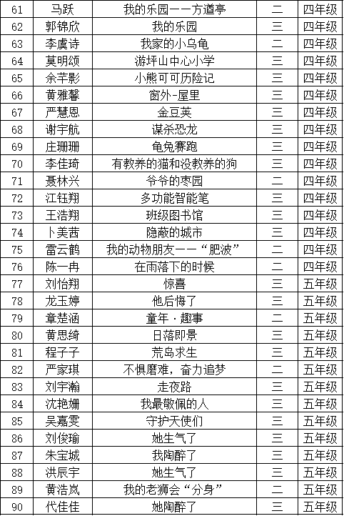 自2021年1月,活動征稿啟動以來,獲得了深圳市廣大中小學(xué)生、教師、文學(xué)愛好者的熱烈響應(yīng)積極參與,吸引了深圳百余所學(xué)校的上萬人關(guān)注報名。現(xiàn)公布坪山區(qū)坪山中心小學(xué)晉級復(fù)賽名單如下: