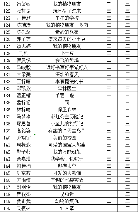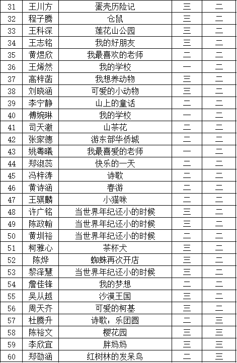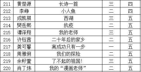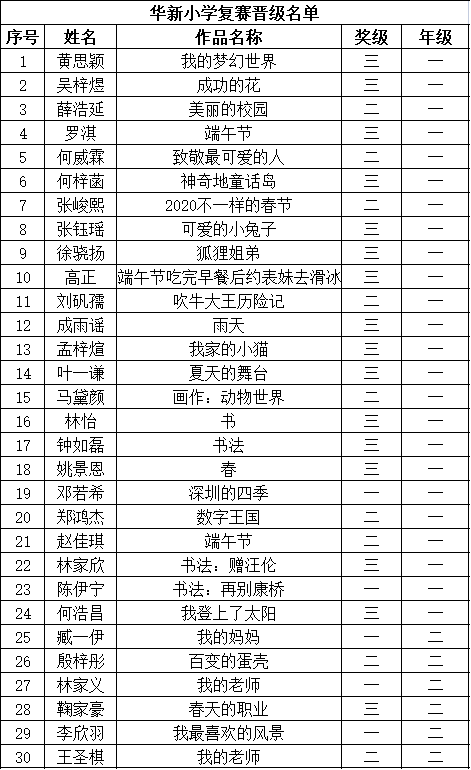 自2021年1月,活動征稿啟動以來,獲得了深圳市廣大中小學生、教師、文學愛好者的熱烈響應積極參與,吸引了深圳百余所學校的上萬人關(guān)注報名。現(xiàn)公布福田區(qū)華新小學晉級復賽名單如下: