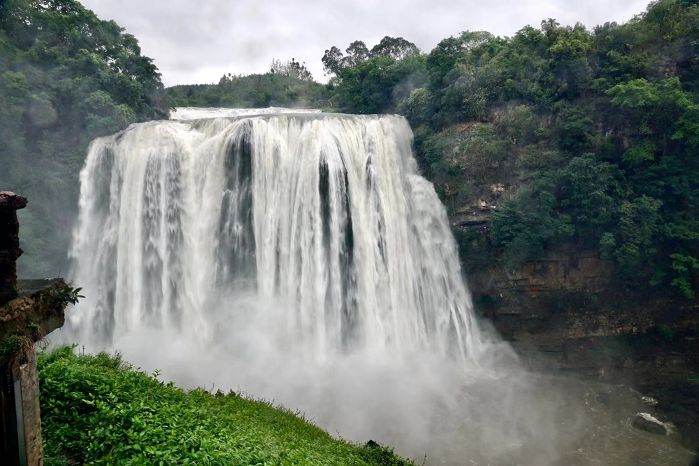 水大時(shí),瀑布濺珠飛灑到100多米高的黃果樹街上,兩三里外能聽到雷鳴般的響聲。李仁奇 攝