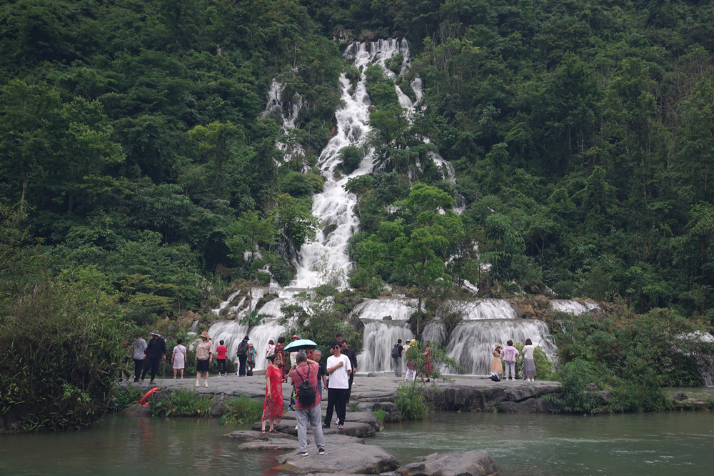 拉雅瀑布距小七孔橋百余米,瀑寬10米,落差30米,瀑勢(shì)如山倒,頗為壯觀。李仁奇 攝
