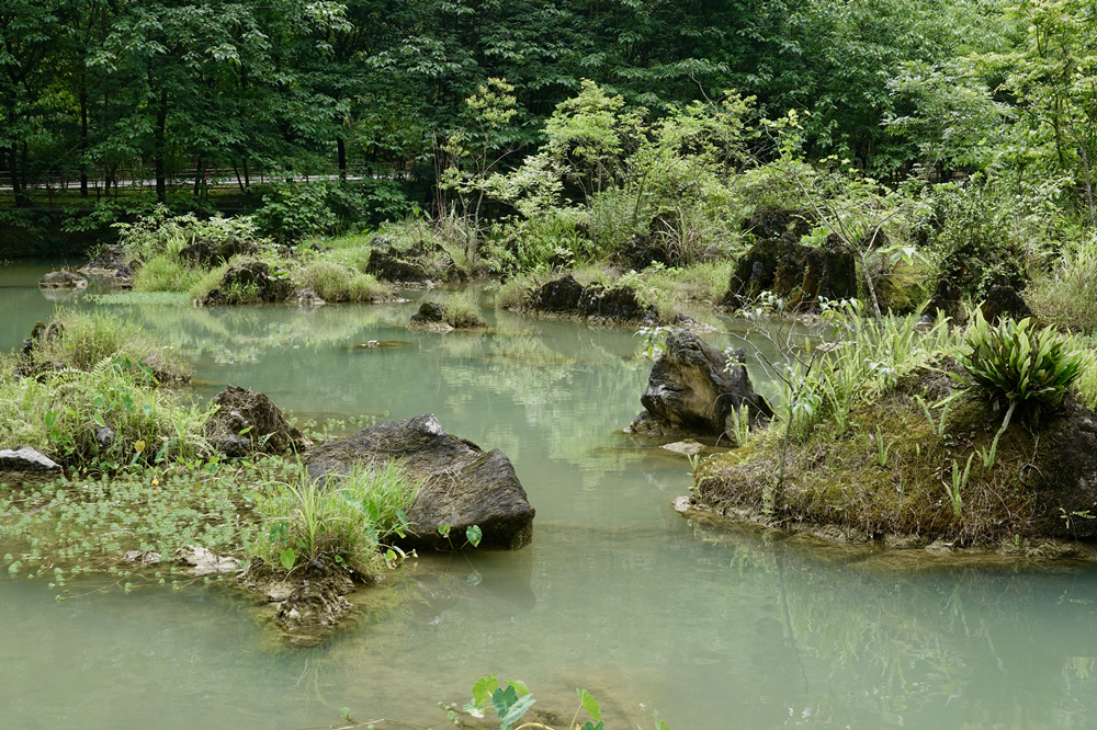 水中的石頭長(zhǎng)滿蕨類植物,就像一個(gè)個(gè)盆栽。李仁奇 攝