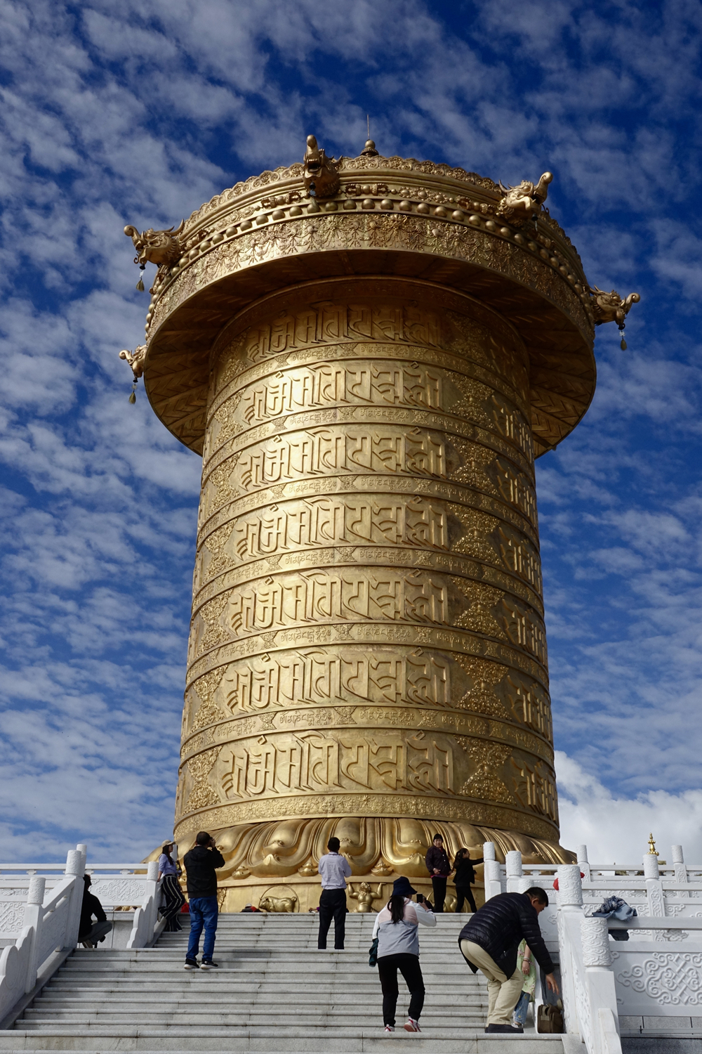 青海貴德縣的中華福運輪筒高26.285米,直徑為10.22米,底座高15米。2012年建成后,頂替甘肅肅南轉經(jīng)筒成為世界上最大的轉經(jīng)筒。李仁奇 攝