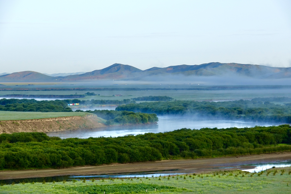 一灣河水從朦朧到漸漸清晰,一點點層次分明。李仁奇 攝