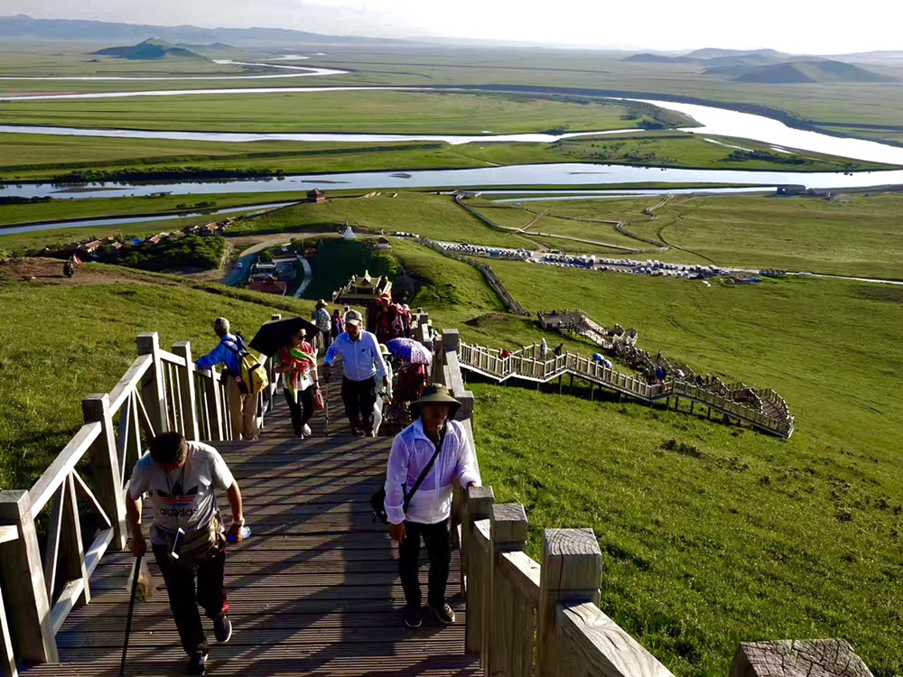 沿著木棧道拾級(jí)而上,山下的河道隨著視覺的開闊而愈顯豐盈靈動(dòng)。李仁奇 攝