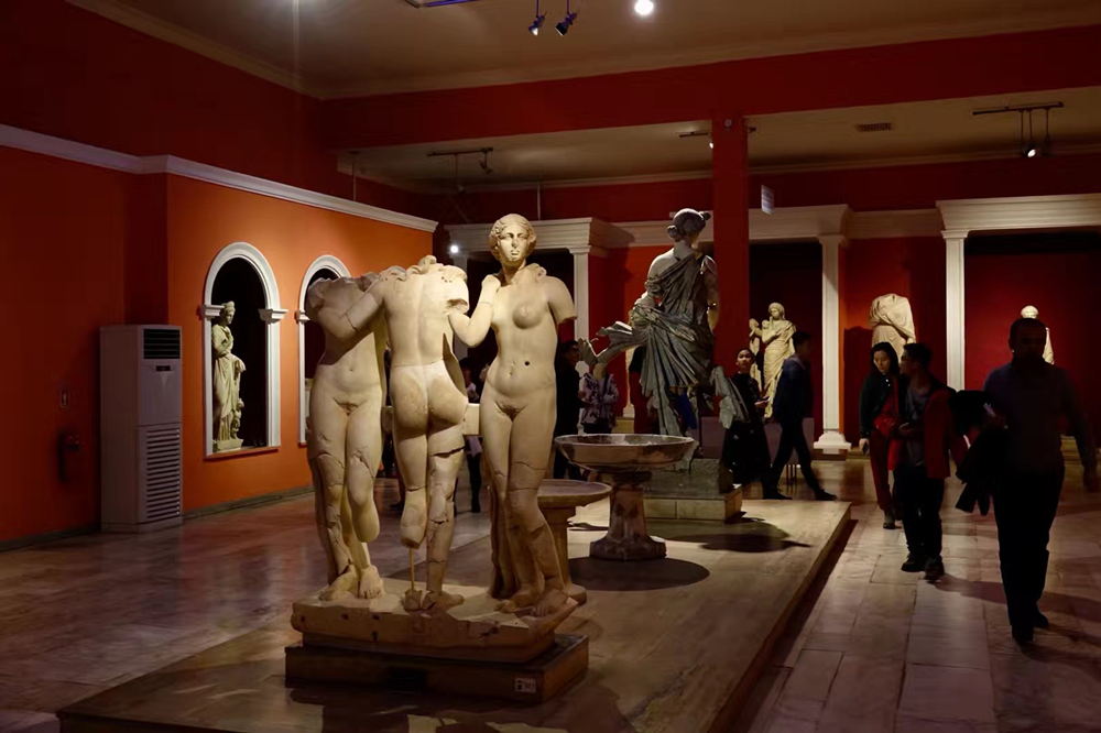 大量公元2—3世紀(jì)的人體雕塑令人目不暇接,這個(gè)時(shí)期也是該地區(qū)歷史發(fā)展中最為繁盛的階段。館內(nèi)陳列著眾多古希臘古羅馬眾神的雕像,號(hào)稱(chēng)“萬(wàn)神殿”。這些雕像是從公元8世紀(jì)的古墓里面發(fā)掘出來(lái)的,包括眾神之神宙斯、天后赫拉、智慧女神雅典娜、愛(ài)情與美麗女神阿芙羅狄忒、太陽(yáng)神阿波羅、大力神赫拉克勒斯等。李仁奇 攝