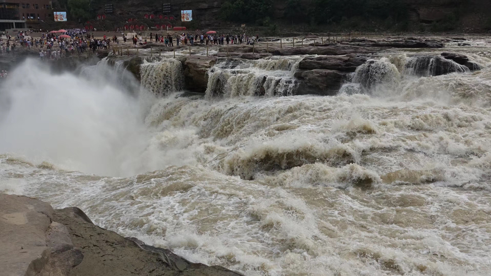 瀑布上游黃河水面寬300米,在不到500米長的距離內(nèi),被壓縮到20-30米的寬度。1000立方米/秒的河水,從20多米高的陡崖上傾注而下,形成”千里黃河一壺收”的氣概。這也是第四套人民幣50元紙幣背面的取景地。李仁奇 攝