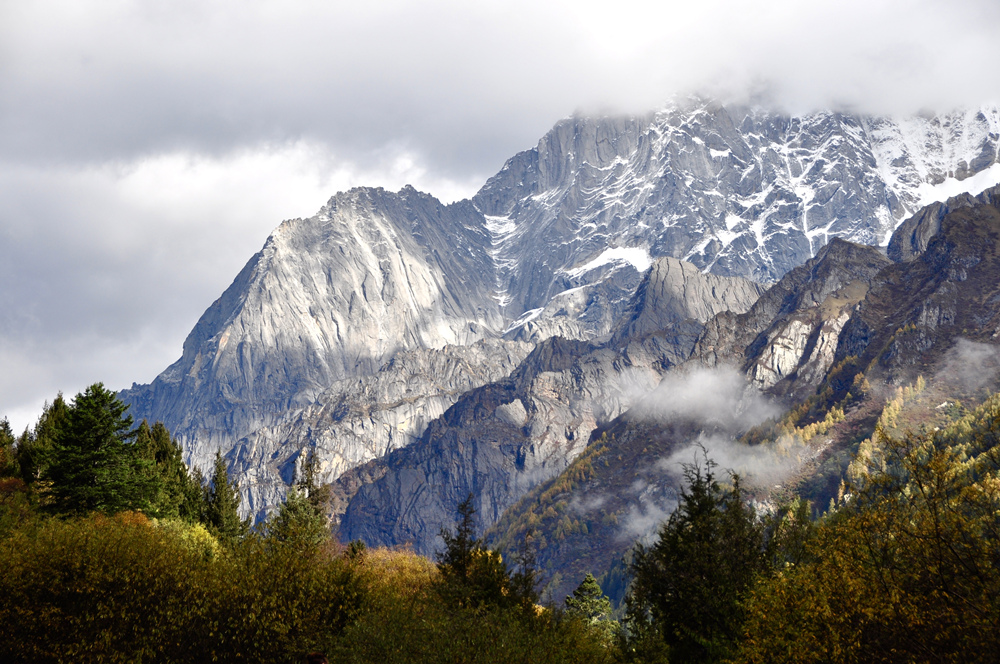 四姑娘山以雄峻挺拔聞名,山體陡峭,直至藍天,冰雪覆蓋,銀光照人。山麓森林茂密,綠草如茵,清澈的溪流潺潺不絕,宛如一派秀美的南歐風光。李仁奇 攝
