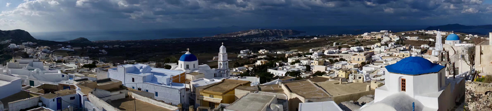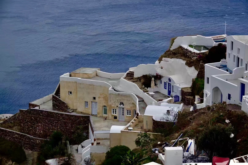 費(fèi)拉碼頭附近有許多懸崖,無數(shù)的白色小屋依山而建,與天空、海洋混成一體,這是地中海獨(dú)有的景觀。李仁奇 攝