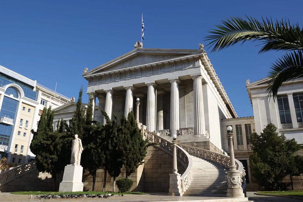 雅典在希臘獨(dú)立之后建了許多優(yōu)雅的新古典主義建筑,其中最著名的國(guó)家圖書館、國(guó)家科學(xué)院和雅典大學(xué)被稱為新古典主義三部曲,這三座建筑連在一起,蔚為壯觀,是這座城市的地標(biāo)。李仁奇 攝