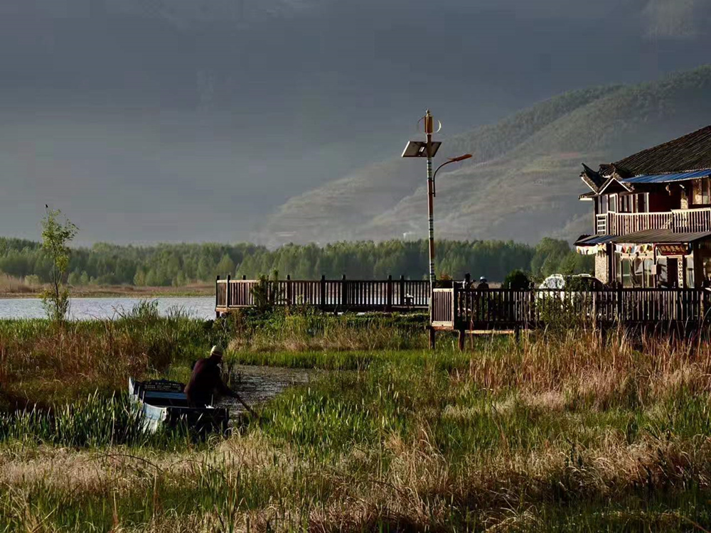 洛洼碼頭,碼頭的所屬地洛洼半島是一個非常重要的分界線,半島的這邊是著名的草海,半島的那邊是亮海。李仁奇 攝