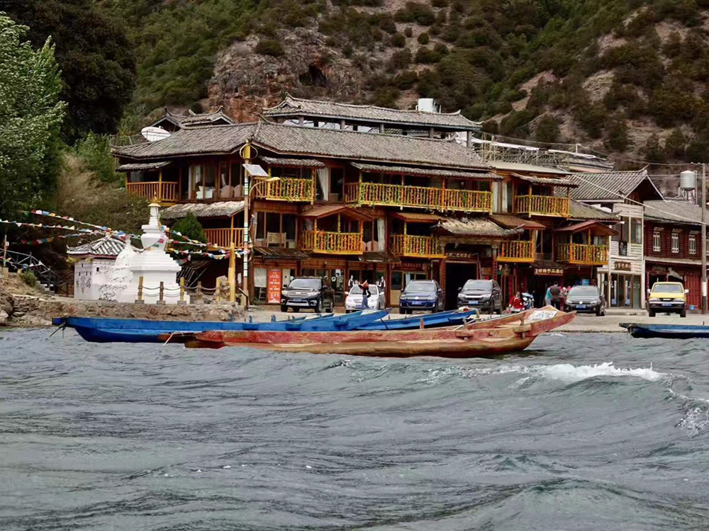 沿湖岸都是摩梭人家的木房子,現(xiàn)在多數(shù)都改造為可提供住宿的旅館。李仁奇 攝