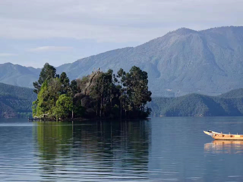 里格島是瀘沽湖內(nèi)一個美麗的半島,海島三面環(huán)水,左右青山環(huán)抱,傍立格姆女神山。李仁奇 攝