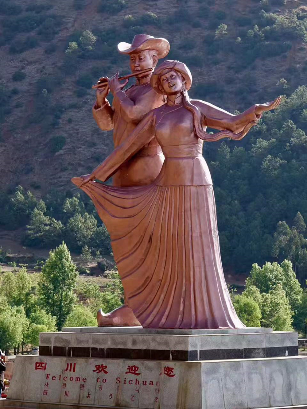 小洛水村是云南境內(nèi)瀘沽湖邊的一個村寨,村口的這座雕像就是云南和四川的交界線。李仁奇 攝