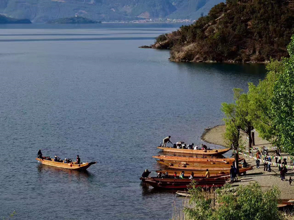 瀘沽湖沿岸居住著蒙古族和彝、漢、納西、藏、普米、白、壯等7個(gè)民族的居民約1.3萬(wàn)人。李仁奇 攝