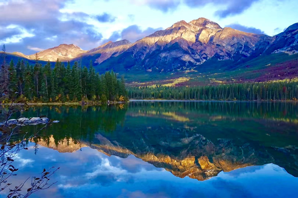 賈斯帕鎮(zhèn)北邊約7公里處的金字塔湖,海拔1179米,湖邊一座海拔2763米的山峰,呈比較對稱的三角形,山上的巖石含有黃鐵礦,呈現(xiàn)出被風化了的粉色和橘色,像鍍了一層金,金字塔山和金字塔湖由此得名。李仁奇 攝
