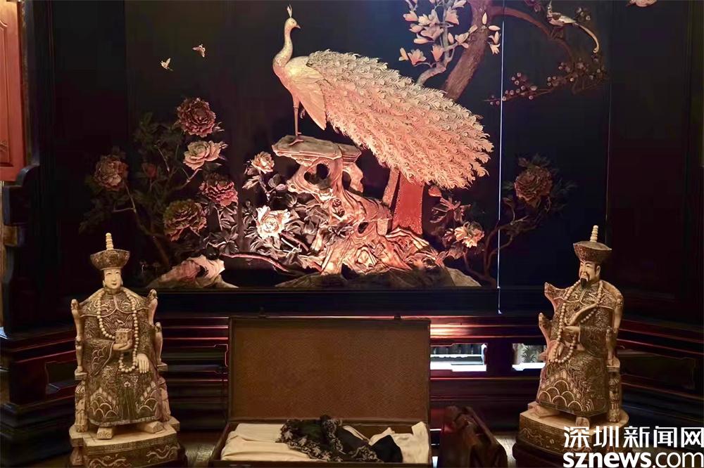 這座城堡擁有98個房間,包括放置雕漆屏風和清朝帝后塑像的中式風格房間。李仁奇 攝