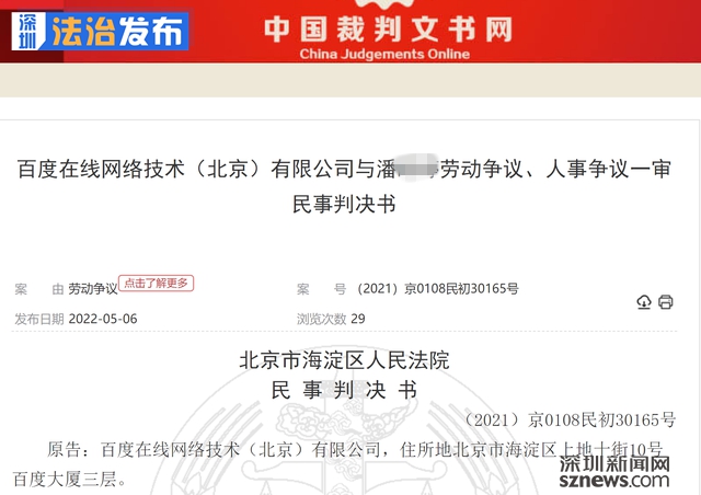 讀特客戶端·深圳新聞網(wǎng)2022年5月12日訊(記者 張玲 翁任瑩 實習(xí)生 趙薇)5月6日,中國裁判文書網(wǎng)披露的一起案件顯示,百度公司前員工潘某某離職后入職字節(jié)跳動,被百度告上法庭,理由是違反競業(yè)限制義務(wù)。北京市海淀區(qū)人民法院最終判決潘某返還百度公司為其支付的競業(yè)限制補(bǔ)償金214800元,同時判決潘某某向百度公司支付競業(yè)限制違約金859200元,繼續(xù)履行對百度公司的保密義務(wù)。