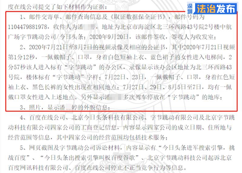 有一個細(xì)節(jié)值得注意:百度公司不僅向字節(jié)跳動辦公地址寄去收件人為潘某某的快遞,而且向法庭提供了潘某某出現(xiàn)在字節(jié)跳動辦公區(qū)、駕車停放在字節(jié)跳動地庫等多個視頻錄像,這些舉動被網(wǎng)友解讀為現(xiàn)實版諜戰(zhàn)大片。很多人從案件看到互聯(lián)網(wǎng)行業(yè)激烈的人才爭奪戰(zhàn)和同業(yè)競爭的殘酷,也再次感受到競業(yè)限制的威力。