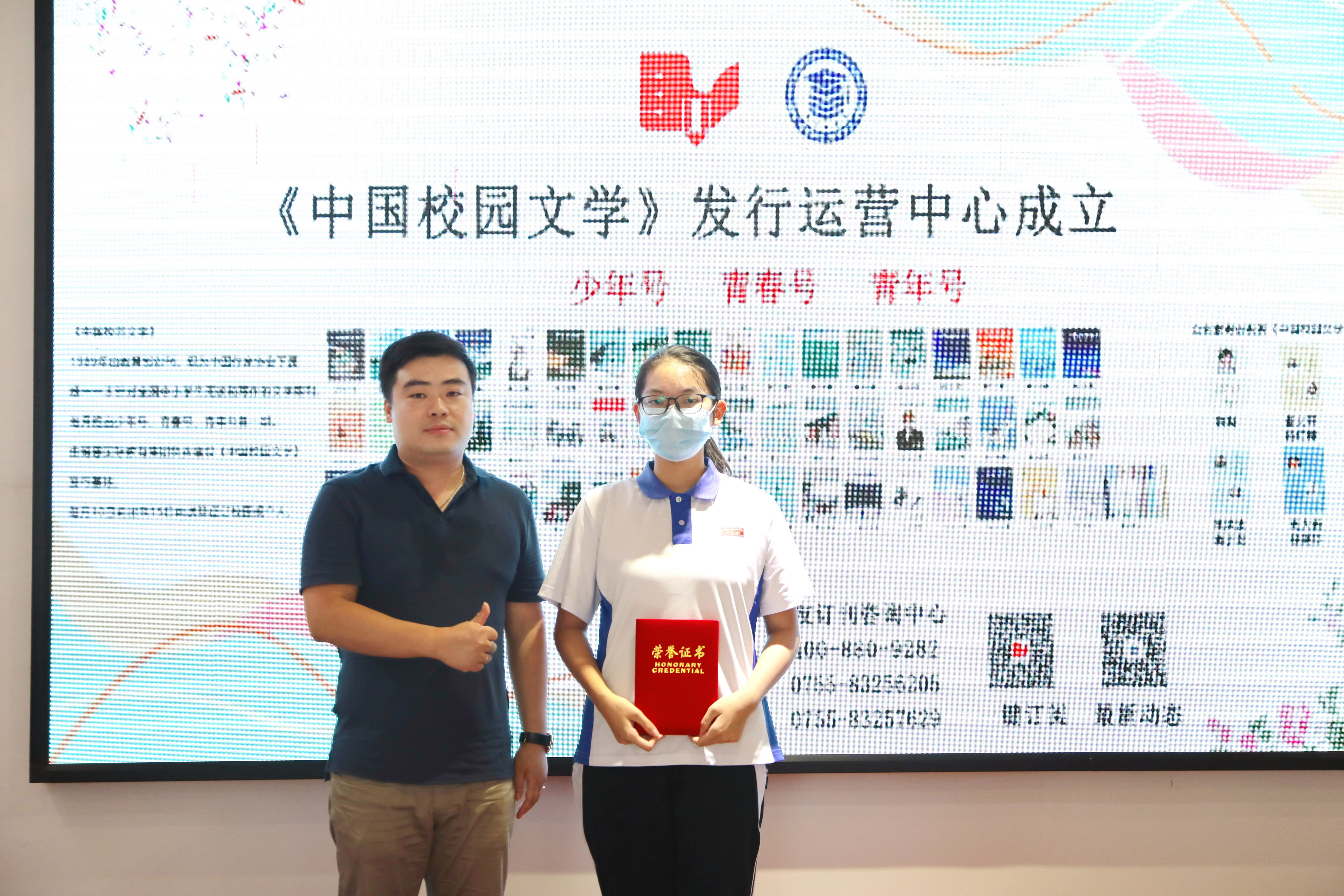 “一起向未來?鵬城冬奧故事”,中國校園文學獲獎代表與頒獎嘉賓合影