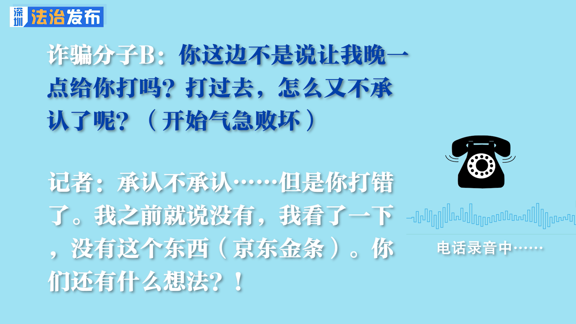 詐騙分子B:那你有毛病吧,你這個(gè)人!(氣得自己把電話掛了)