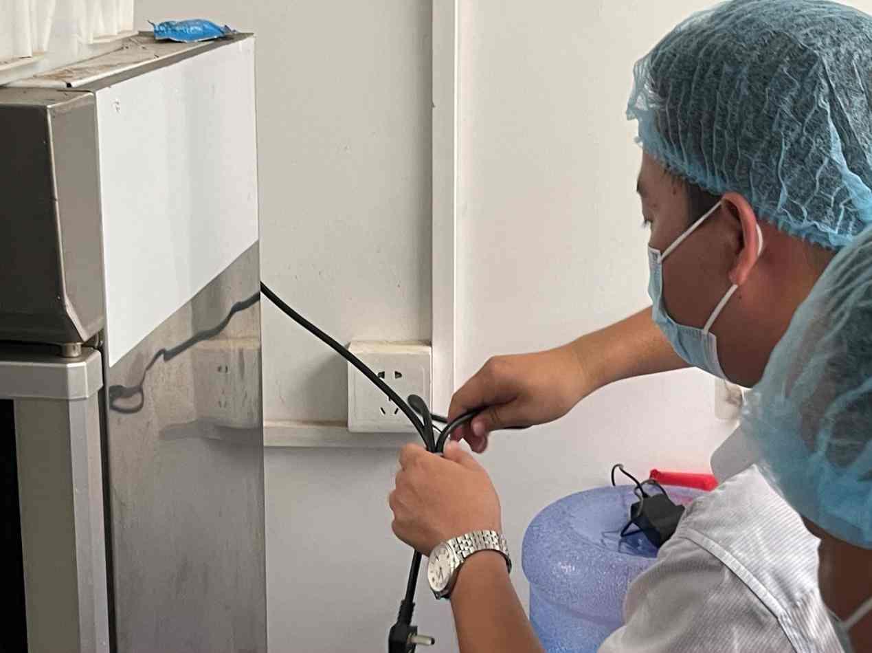 執(zhí)法人員也對后廚的設施進行了細致檢查。在檢查消毒柜時,執(zhí)法人員發(fā)現該消毒柜未連通電源,對存放在其中的餐具起不到消毒的作用;而在配餐間,存放菜品的保溫池也并未接通電源,執(zhí)法人員稱,若保溫池不接通電源,菜品的中心溫度極有可能無法保持在70°以上,容易滋生細菌,造成食物中毒。