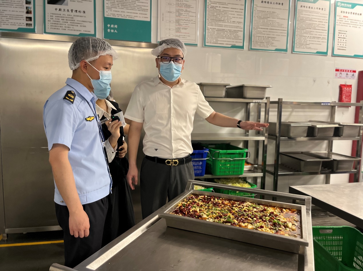 執(zhí)法人員現(xiàn)場(chǎng)對(duì)學(xué)校后廚進(jìn)行詳細(xì)檢查,分別從采購(gòu)索證索票、進(jìn)貨查驗(yàn)、制作加工、備餐配送、場(chǎng)所和設(shè)施清潔維護(hù)、餐飲具清洗消毒、從業(yè)人員健康管理,制止餐飲浪費(fèi),食品安全總監(jiān)配置履職情況,以及落實(shí)主體責(zé)任的“日管控周排查月調(diào)度”制度等方面進(jìn)行詳細(xì)檢查。經(jīng)檢查,整體情況良好,但存在部分細(xì)節(jié)問(wèn)題,如水產(chǎn)品刀具分類(lèi)可更細(xì)致、操作臺(tái)積水需清理、面點(diǎn)間的食材存放需避免陽(yáng)光直射等,針對(duì)檢查過(guò)程中發(fā)現(xiàn)的問(wèn)題,執(zhí)法人員現(xiàn)場(chǎng)責(zé)令學(xué)校限期整改到位。同時(shí),快檢工作人員對(duì)餐廳使用的食材進(jìn)行了抽檢,結(jié)果均為陰性。