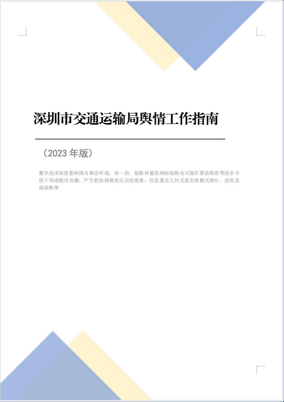 深圳市交通運(yùn)輸局輿情工作指南