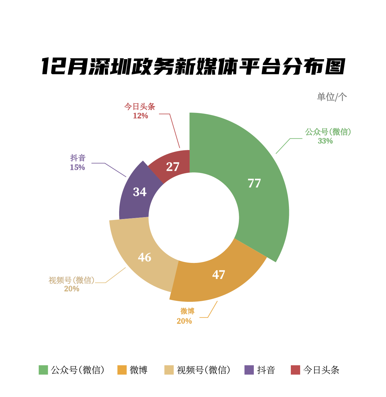 12月,市衛(wèi)生健康委、龍崗區(qū)、福田區(qū)、南山區(qū)、市氣象局、深汕特別合作區(qū)、光明區(qū)、市消防救援支隊(duì)、龍華區(qū)、市應(yīng)急管理局榮登“深圳優(yōu)秀政務(wù)新媒體矩陣”榜單。12月,市衛(wèi)生健康委持續(xù)發(fā)力抖音等平臺(tái),鞏固榜首地位,展現(xiàn)了政務(wù)宣傳賬號(hào)的蓬勃活力與創(chuàng)新能力,贏得了廣泛關(guān)注。龍崗區(qū)新媒體矩陣則在微信公眾號(hào)、抖音兩大平臺(tái)上取得了亮眼成績(jī)。福田區(qū)新媒體矩陣通過精心策劃與運(yùn)營(yíng)微信公眾號(hào)平臺(tái),成功吸引了大量忠實(shí)讀者,最終在《深圳優(yōu)秀政務(wù)新媒體矩陣》榜單中榮獲第三名。同時(shí),南山區(qū)、市氣象局、深汕特別合作區(qū)等新媒體矩陣在也在各自領(lǐng)域內(nèi)大放異彩,在榜單中名列前茅。