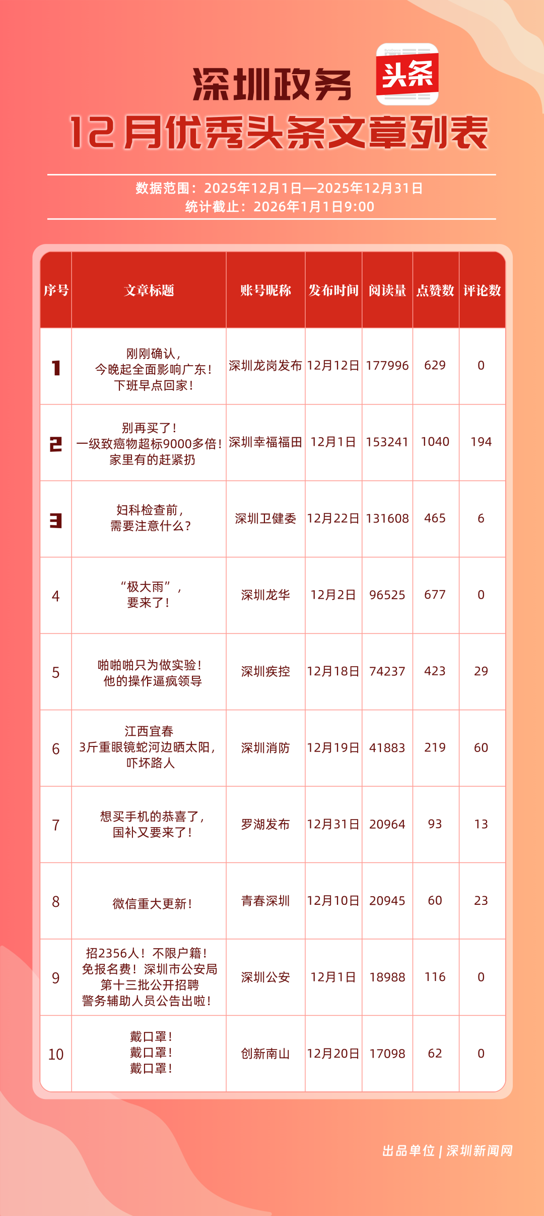 四、12月深圳優(yōu)秀政務(wù)新媒體賬號