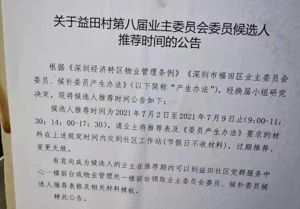 業(yè)主質(zhì)疑益田村業(yè)委會選舉,回應(yīng):歡迎依法反饋