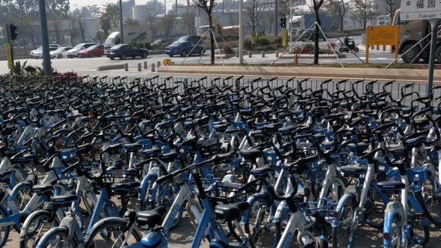 寶安福園一路密密麻麻堆積大量小藍車,回應:已完成整改