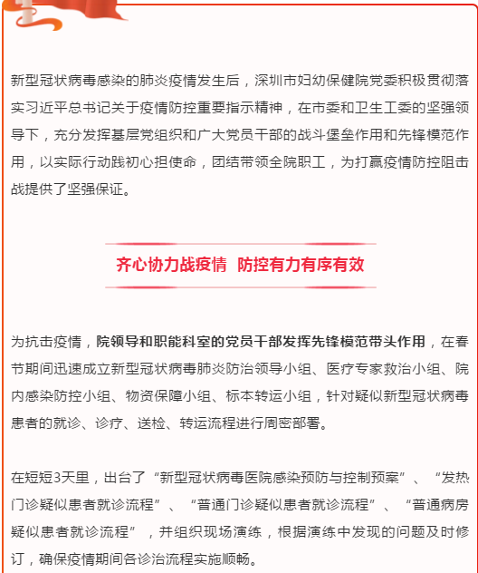 “婦女、兒童抵抗力比較弱,所以母嬰疫情防控工作更加顯得尤為重要。我們是全市婦幼的’龍頭’單位,不僅要做好全院的疫情防控工作,還承擔(dān)著向全市提供為母嬰健康保駕護(hù)航的指引工作,作為醫(yī)務(wù)人員我們更是責(zé)無(wú)旁貸要做好本職工作。“賴碧娟告訴記者,深圳市婦幼保健院是全市49家發(fā)熱門診之一,作為全市唯一一家婦幼三甲??漆t(yī)院,該院承擔(dān)著更多在特殊時(shí)期為母嬰健康與安全保駕護(hù)航的作用。